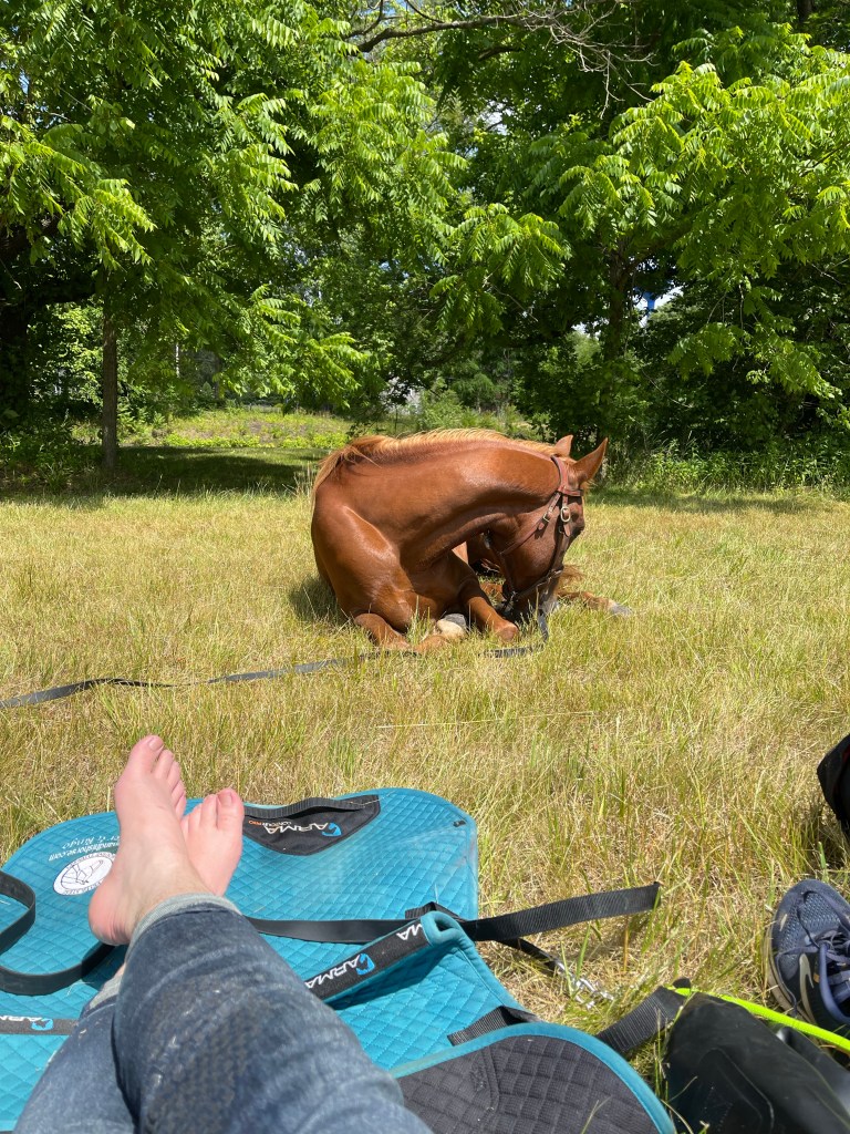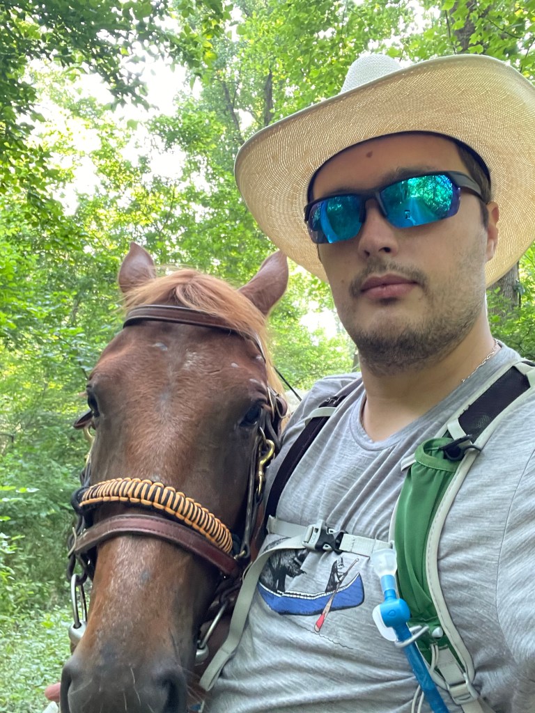I came off and ended up in hospital at which point the ride had to be abandoned at least temporarily. I’ve gone back to the uk to heal and ringo is in Texas stuffing his face with grass.